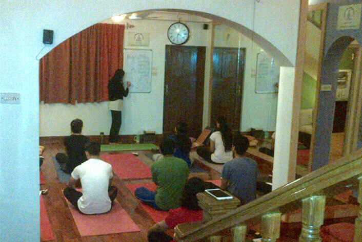 Where the focus is on cleansing the body,improving muscle tone,gaining strength and suppleness,and also improving flexibility through Asanas (yogic postures) and Kriyas (cleansing techniques}. These classes include a theoretical introduction to Pranayama ( breathing techniques] along with practice of a few basic breathing techniques. We have different batches for adults in the mornings,as well as in the evenings.